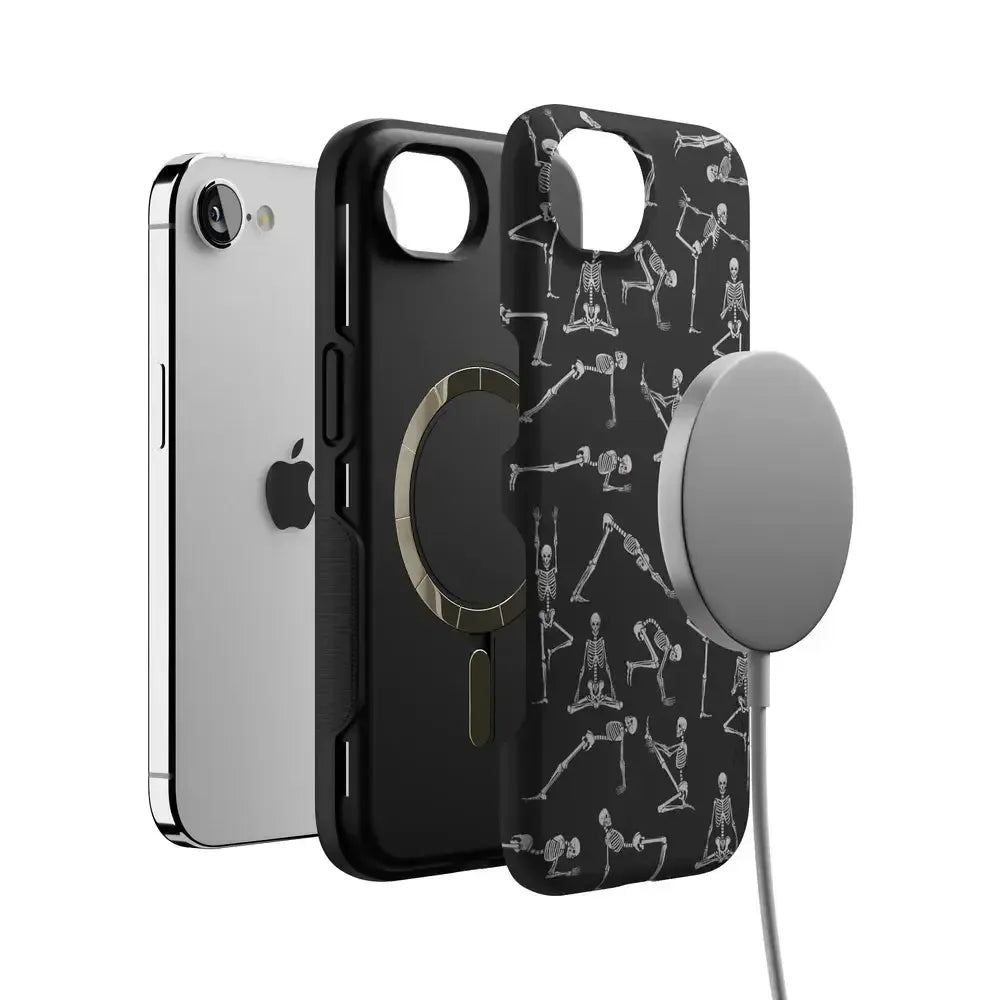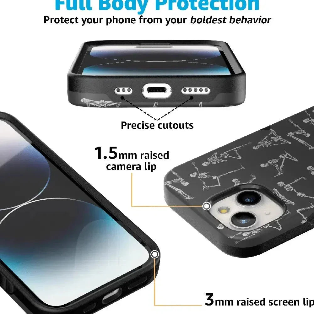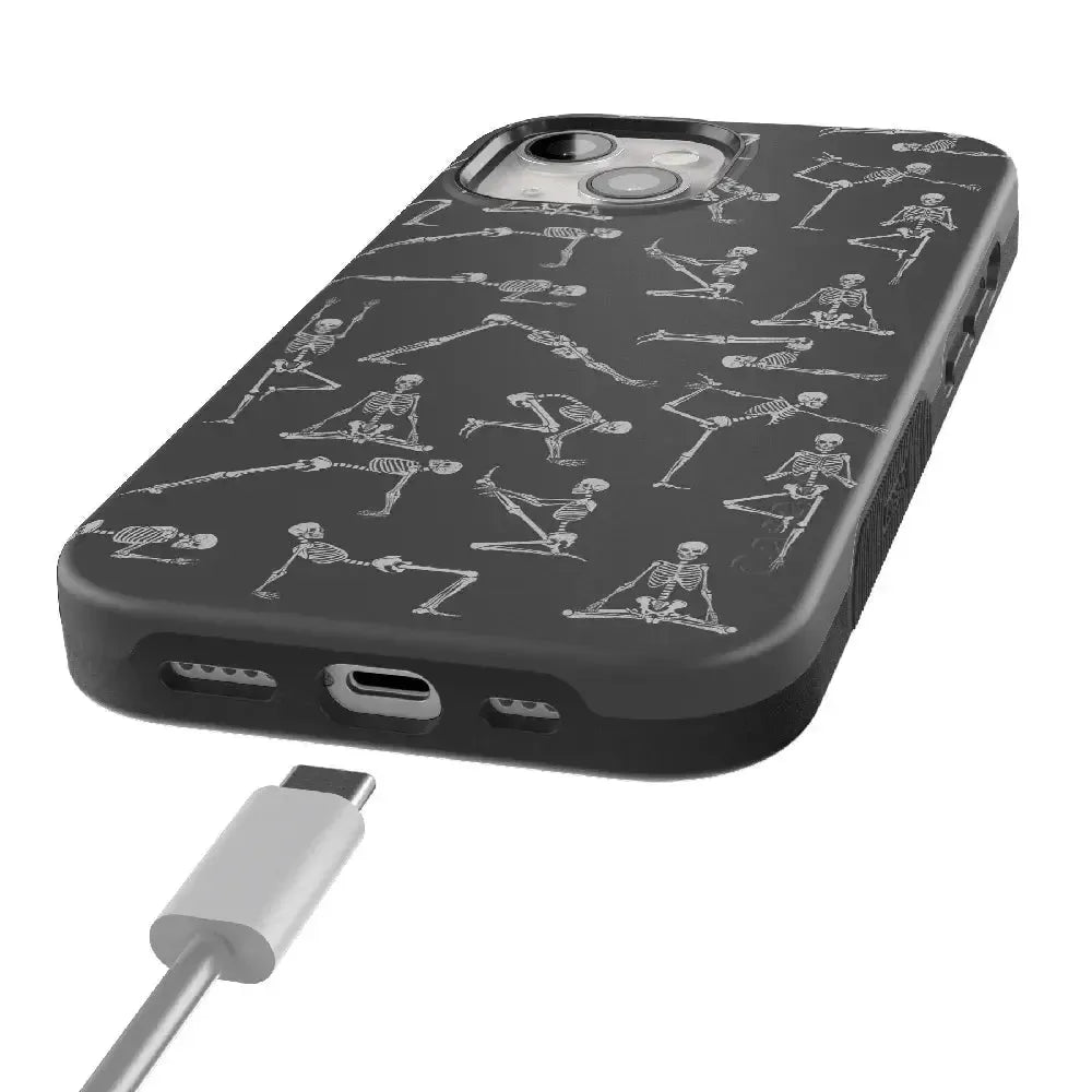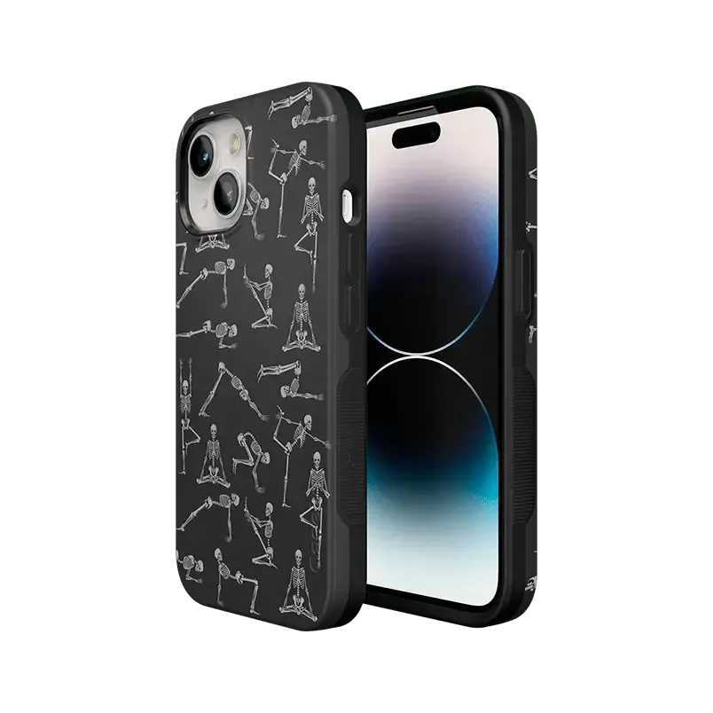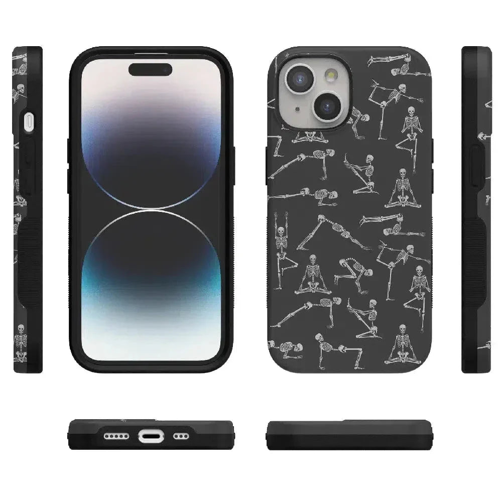 Chill out with the Corpse Pose Skeleton Yoga Case. a fun pick from our Halloween Collection. Featuring a laid-back skeleton striking yoga poses. this case brings a relaxed vibe to your spooky style. It's got dual-layer protection to keep your phone safe from everyday mishaps while staying slim and easy to carry. Perfect for those who love a mix of zen and Halloween flair. this case is all about good vibes with a spooky twist.