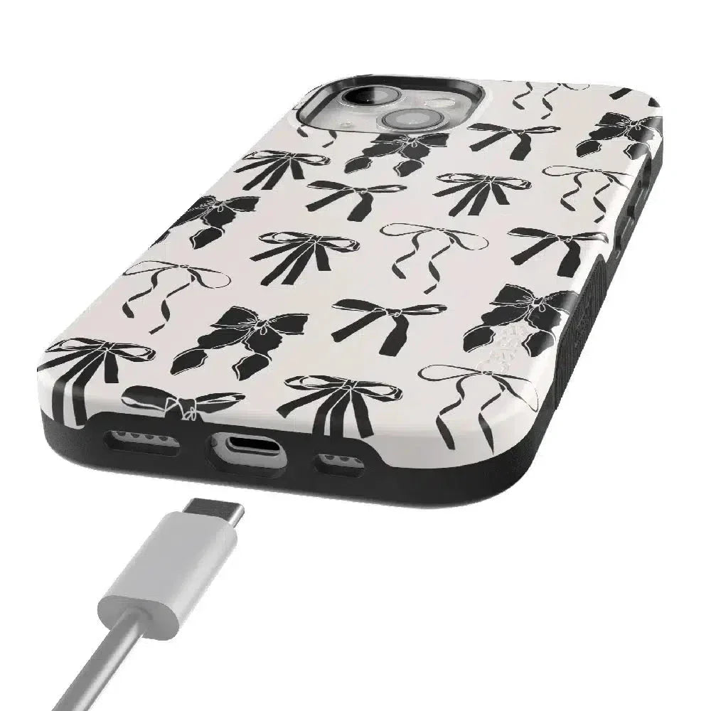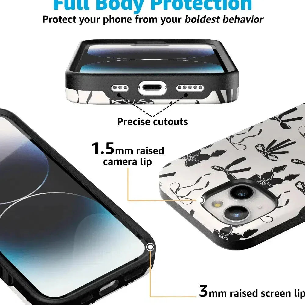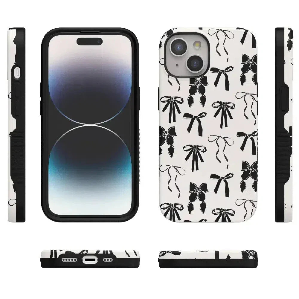Meet the Goth Girlie Black Bows Case. the latest version of our best-selling Coquette Girlie Case. This new design adds a darker. edgier twist to the beloved style. perfect for those who love to mix cute with a bit of goth flair. Just like the original. it offers dual-layer protection to keep your phone safe from drops and bumps while maintaining a sleek profile. Elevate your style with this must-have case. combining classic bows with a bold. black aesthetic.