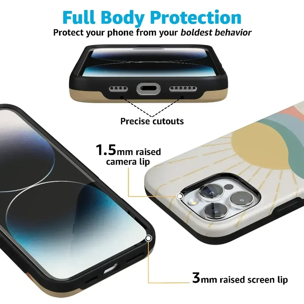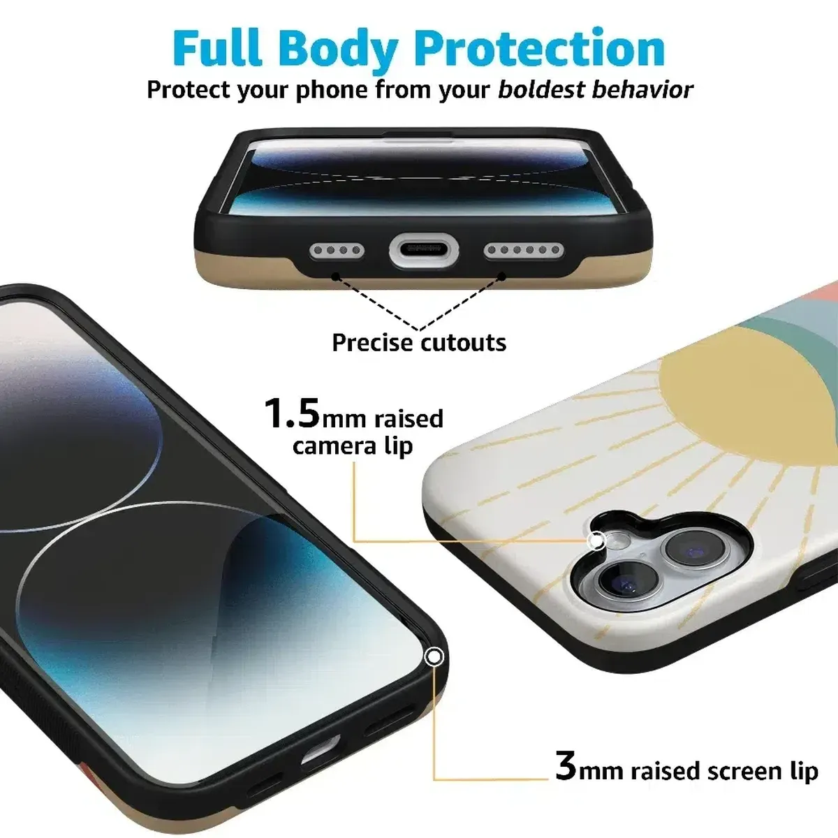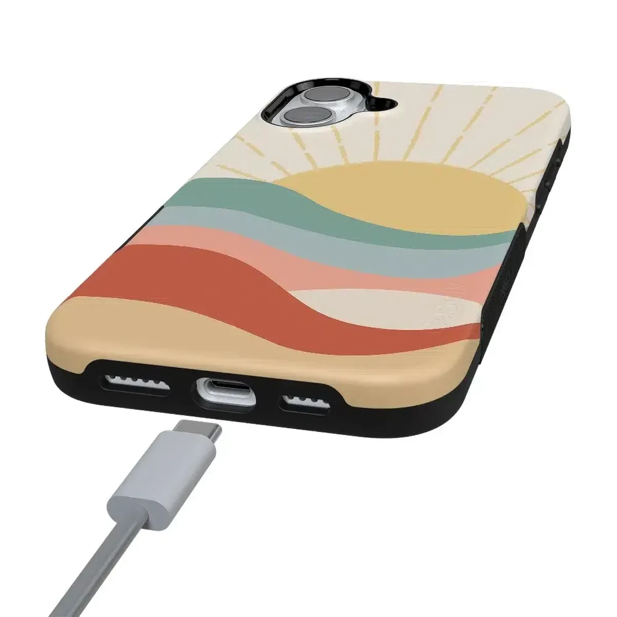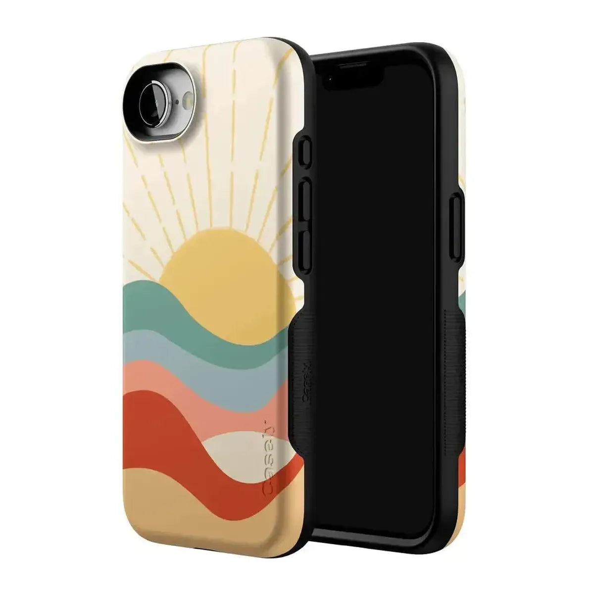 Hey little darling. what better way to wake up every morning than to the sun rising on your very own case? This shining case will add a sparkle of joy to anyone's day. making it the perfect cover to offset the gloomy fall and winter skies. It's impossible not to feel at least 2% happier after looking at the rays of sunshine beaming over rolling colorful hills! With gorgeous sunrise color combinations like yellow. blue. red. and pink. this case is as versatile as it is eye-catching. This cover is a conversation starter to return smiles to your face and your friends! This cheery cover is also perfectly able to withstand hard falls. With specifically rounded edges to protect your phone screen and volume buttons. you'll never have to worry if you're sacrificing protection for looks. This phone case can be purchased for all iPhones 6 and up. the latest Samsung models. and the latest Note models.